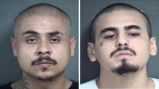 Image copyright Kansas City Kansas Police Image caption Hugo Villanueva Morales (left) remains at large. Javier Alatorre (right) was arrested on Sunday. Kansas police have arrested one of two men suspected over a bar shooting…