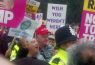 In LBC footage of the latest incident, the pro-Trump demonstrator can be seen wearing a ‘Make America Great Again’ hat.