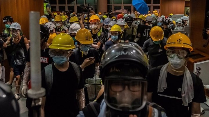 Protesters broke the windows of Hong Kong’s parliament building