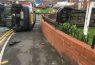 One of the cars came to rest in the front garden of a funeral home.