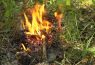 I spot smoke rising from the earth. The forest is smouldering. Small flames are licking at bushes and shrubs. The fire is greatest to one side of the track.